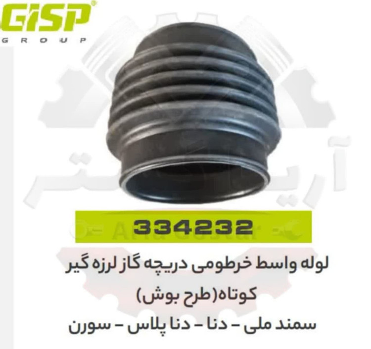 لوله واسط خرطومی دریچه گاز لرزه گیر کوتاه ( طرح بوش ) سمند ملی - دنا - دنا پلاس - سورن جی ای ای پی ( GISP )