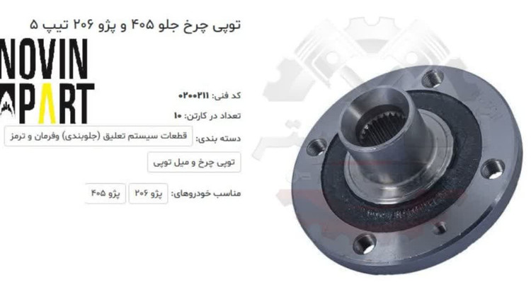 توپی چرخ جلو 405 - پارس - سمند - 206 تیپ 5 - سمند ملی - دنا - سورن نوین پارت