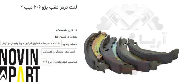 لنت ترمز چرخ عقب 206 تیپ 2 نوین پارت